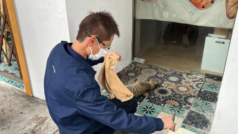 消防在食店門口發現花貓奄奄一息。梁國峰攝
