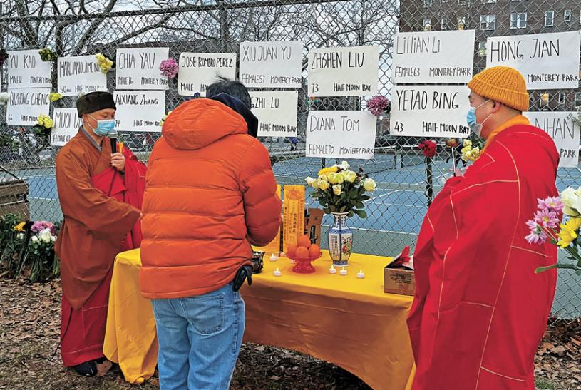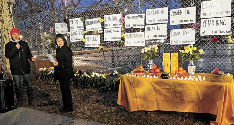紐約華裔社區代表於2月6日晚,在布碌崙8大道華社舉辦燭光追悼會,以悼念此前在加州蒙特利公園市(Monterey Park)與半月灣(Half Moon Bay)兩起大規模槍擊案的死者。
