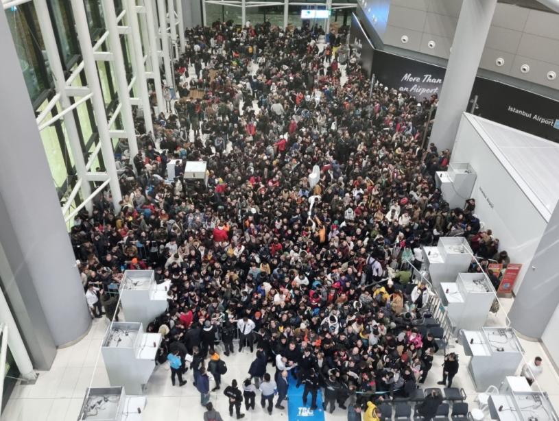 從媒體和網上發布的多張照片及影片可見,面積不大的伊斯坦堡機場內同一時間聚集逾千名等候上機的義工,幾乎把候機大廳迫爆,場面震撼。