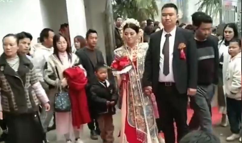 結婚是人生大事,新人們都希望婚禮順利進行。昨日(2月6日)網上流傳一段影片,雲南一對新人婚禮舉行期間,居然有人「踩場」,多名女子走在新人面前,拉起「我們是陳某(新郎)前女友團隊,今天我們一定把你搞報廢」的橫額,新娘新郎都面露尷尬,這段「新郎的前女友團拉橫幅迎接兩位新人」的影片隨即在網上引關注。