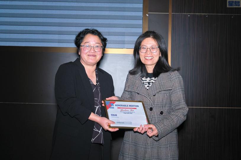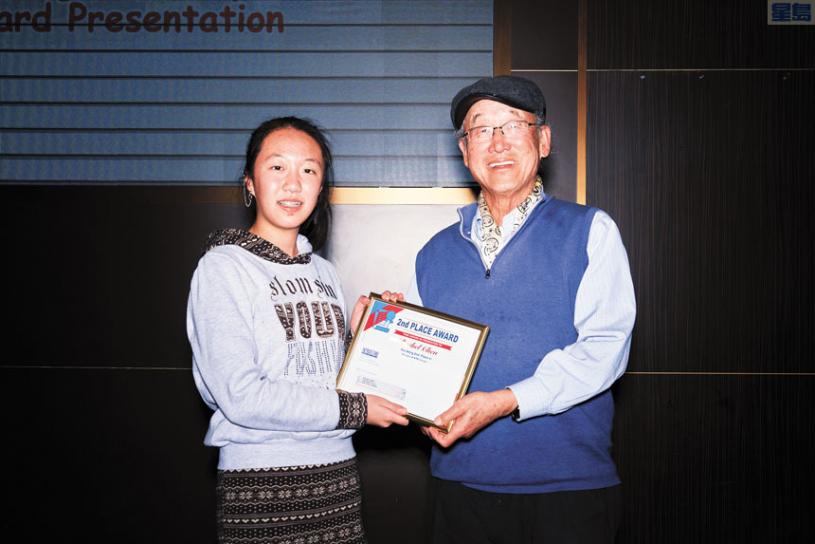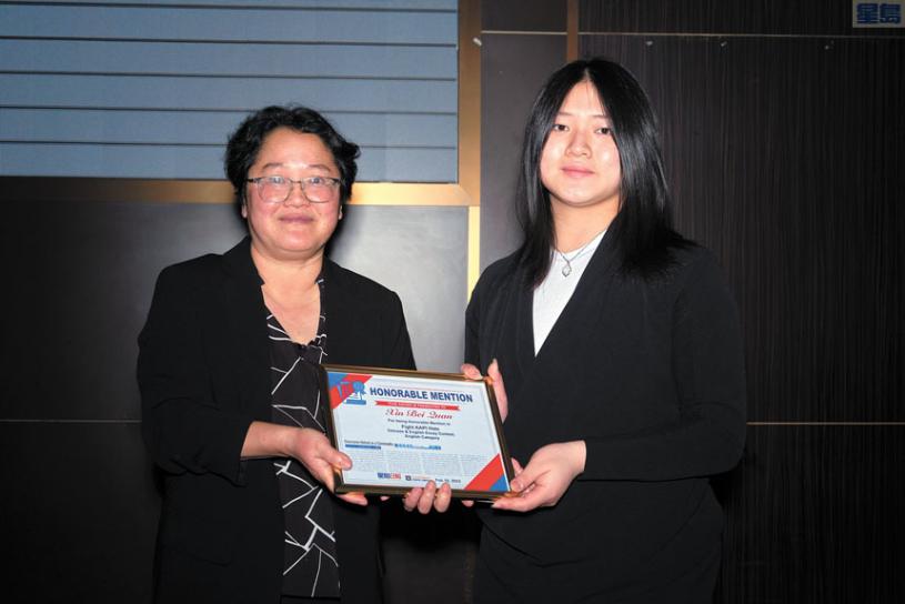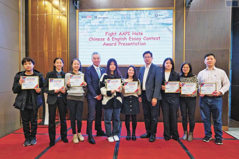 得獎者們與密爾勃雷市議員馮嘉輝(左四)及星島日報美西版社長梁建鋒(右四)合影。