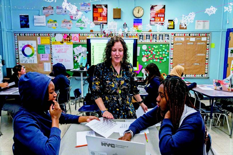 在紐約布朗士的青年女性領導力學校(Young Women’s Leadership School),精力充沛的 11 年級和 12 年級學生在電腦課上學習可穿戴電子技術,他們在共用的學習桌旁坐下,拿出筆記本電腦,轉向教室的前面,盯著一塊白板,老師舒曼(Marisa Shuman)張貼出教學主題。