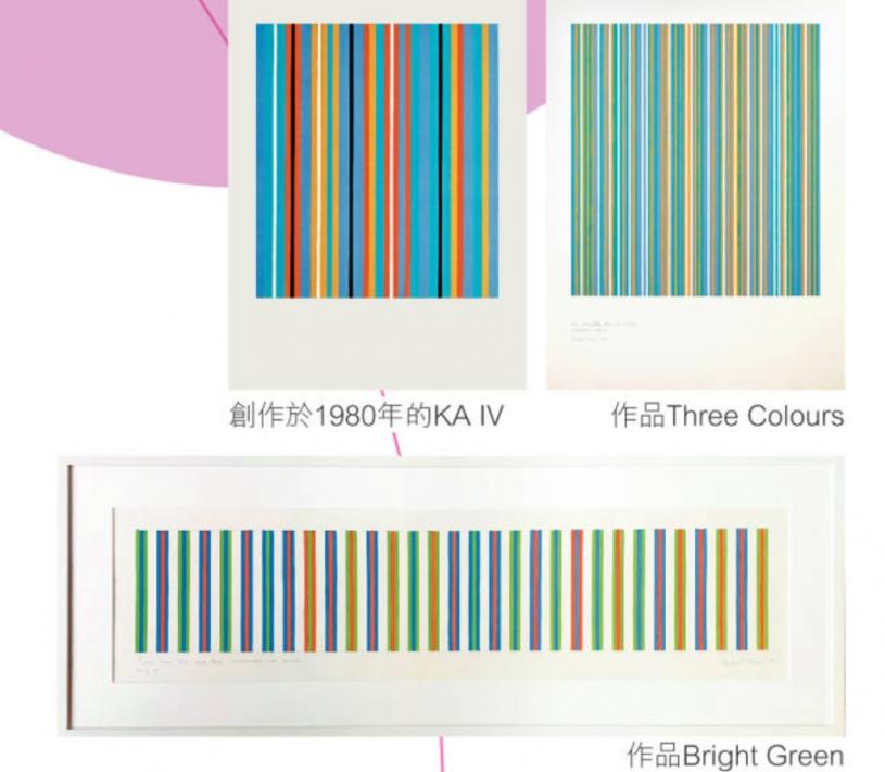 展覽亮點包括一幅亞麻布的油畫創作Rose Rose14,創作於2011,屬北美私人收藏;另一幅油畫KA IV,創作於1980年,正於倫敦展覽中,價格由500萬至1,500萬港元;同時呈獻數幅重要的水粉紙本畫作,價格低於500萬港元。這些作品均展現了色彩與不同形狀產生的互為作用,動感活潑的風格貫徹了藝術家大部分創作。條紋綫是反覆出現的創作主題,也是藝術家探索色彩感性本質的關鍵。