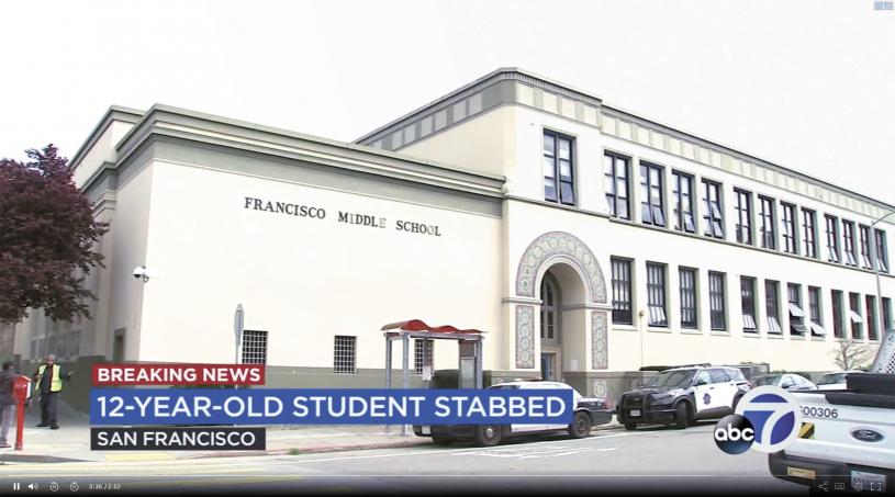 三藩市北岸區(North Beach)一所中學周五(17日)發生傷人案,一名學生在校內遭人用利器刺傷,另一名學生被捕。