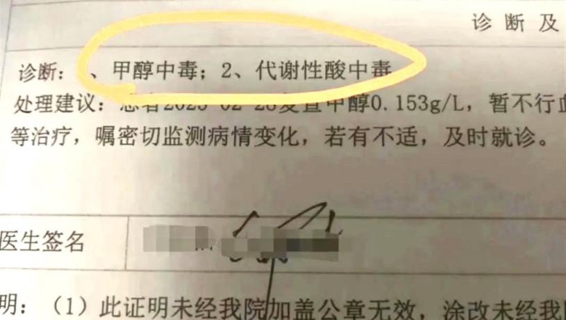 中途,導遊從別桌過來敬酒,但喝的是自己杯裏的酒。次日(26日)早上7點左右,旅遊團出發前往黃龍景區附近一購物點,幾位遊客開始感到身體不適,沒有下車,在座位上休息。購物點待夠2小時後,導遊找車把遊客送回賓館。事後多位遊客身體不適去了醫院,被診斷為「甲醇中毒」,其中一名遊客中毒身亡,一人雙目失明。