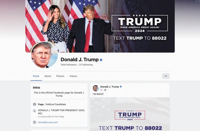 影片平台YouTube解除對前總統特朗普的封鎖令,特朗普同日在臉書發文,高調向支持者表示「我回來了」。YouTube這次宣布決定後,聯同推特、臉書較早前的舉措,意味著三大主流社交平台已全面解除2021年國會騷亂後對特朗普的懲罰,預料有助特朗普迎戰2024年選舉。