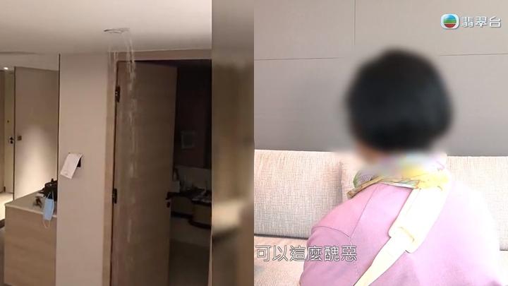 今晚(20日)《東張西望》收到有居住在加拿大的「張太」投訴,原計畫與丈夫於2月來港玩20多次,以每晚1,500元入住黃埔一星級酒店三晚,本來準備退房當日到主題樂園及主題公園玩,怎料退房前接到女兒的電話,表示出現「緊急情況」,客房內的天花板不斷漏水,有如「水舞間」,張太一度擔心天花板會不會塌下來,便前往房間查看。張太疑因洗水間已被水浸,不慎跣低導致右臂骨折受傷,她一度要求酒店提供住宿直至完全康復,但遭到拒絕,酒店只給予優惠價延長住宿日子。張太亦不滿酒店未有跟進賠償問題,只透露保險公司與她聯絡,直斥酒店做法醜惡,敷衍應對疏忽責任。