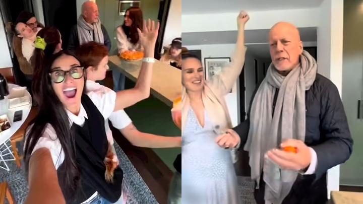 去年3月,美國動作巨星布斯韋利士(Bruce Willis)宣布患上失語症後,上月再證實患有額顳葉認知障礙症(FTD)!昨日是布斯68歲生日,太太Emma Heming與兩個女兒、前妻狄美摩亞(Demi Moore)與3名女兒及伴侶齊為布斯慶祝。狄美分享影片是大家唱生日歌給布斯聽,並向他送上插有蠟燭的蘋果批,挺着巨肚的大女Rumer更興奮得高舉雙手。狄美留言︰「生日快樂,BW!好高興我們今日能夠一齊慶祝。」
