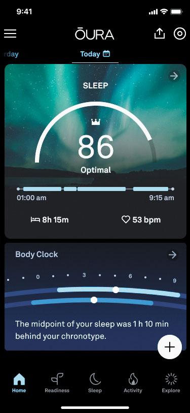 與此同時,Oura引入生理時鐘功能。根據用戶的「時型」,應用程式將告訴用戶他們的睡眠習慣與「最佳」睡眠時間如何一致。Oura將來又計劃,包含更好集中力、活動和休息的時段。