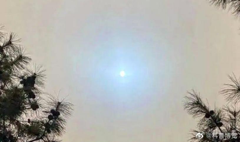 北京不少市民今早抬頭望天,發現太陽變成了藍色,驚呼「就好像在火星上看到的太陽一樣」、「好美」,但也有網友擔心「是不是要出大事情了!」