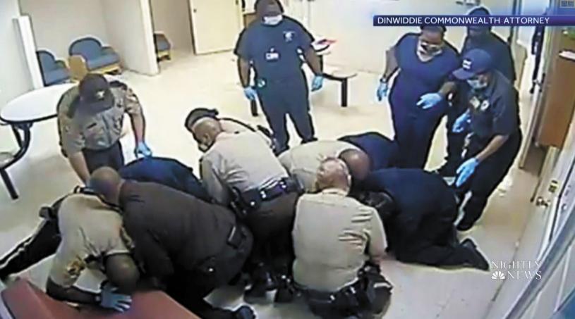維珍尼亞州1名非裔囚犯從監獄轉移到醫院後死亡的案件,當局公開事發現場監控攝像頭片段,顯示死者當時被10名警員和醫院職員坐在身上11分鐘之久,直到最後無法動彈。