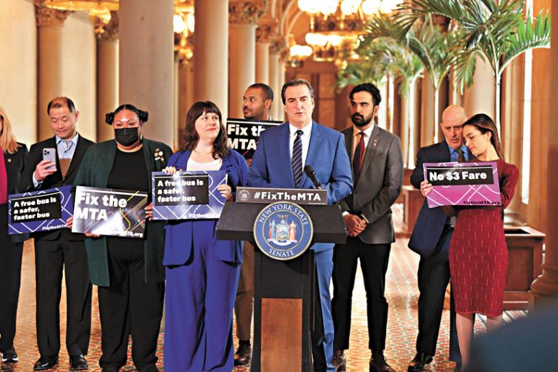 逾20名州立法者於昨(22日)在州議會集會,呼籲州長胡楚在最終州預算中納入MTA票價凍結和免費公交試點所需的資金,該談判將持續到4月1日。