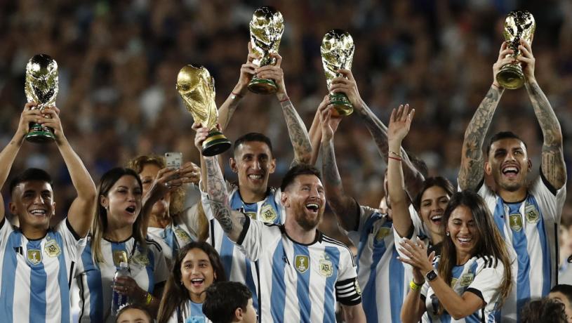 去年底自世界盃封王後,阿根廷周四首次出戰,主場友賽巴拿馬,美斯亦再顯功架,射入罰球收獲個人職業生涯第800球,領軍贏2:0。賽後,現場舉行奪冠慶典,位位球員更都獲得一座仿製大力神盃作留念。