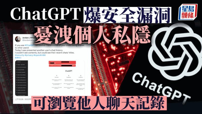 人工智能聊天機械人ChatGPT在全球掀起熱潮,但日前驚爆出現嚴重的安全漏洞,有用戶陸續反眏,ChatGPT的歷史聊天記錄欄目出現了別人的聊天紀錄標題,令外界擔心用戶的私隱因此外洩。研發ChatGPT的OpenAI承認,由於開源庫中的一個軟件錯誤導致這個問題,但現在已經修復。