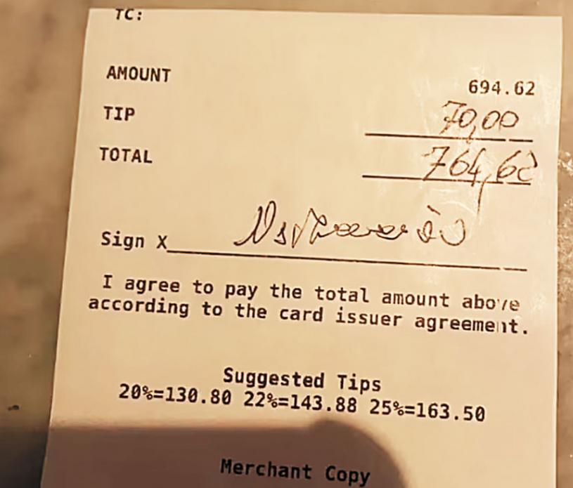 英國《每日郵報》報道,在美國,通常餐廳的小費在15%至25%之間,但並非所有歐洲遊客都知道這些約定俗成的「規矩」。這讓女侍應泰特(Madison Tayt)在服務一群歐洲旅客後,在700元賬單中只收到70元小費後大發雷霆。
