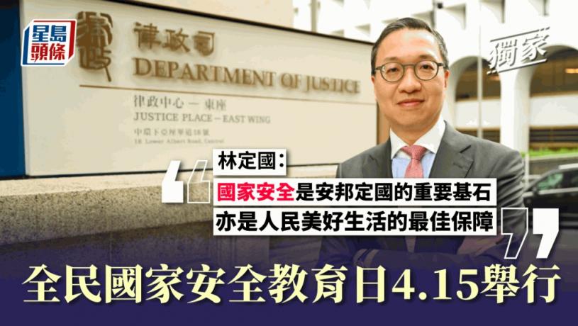 一年一度的「全民國家安全教育日」即將於4月15日舉行,今年主題為「國家安全 穩定繁榮基石」。律政司司長林定國接受本報專訪時表示,「今年活動類型包羅萬有,我有份主持的國安講座比較嚴肅認真,參觀紀律部隊訓練學院及出席升旗禮則比較輕鬆有趣,在不同學校舉行的運動或手工藝工作坊亦可以互動形式,讓學生增強有關國家安全意識的觸覺,可謂各適其適,故非常有信心全民國家安全意識將會與日俱增。」