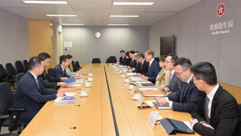 醫務衞生局局長盧寵茂今日(27日)與廣東省藥品監督管理局局長江效東率領的代表團舉行會議,就落實上星期於粵港合作聯席會議後簽署的《粵港澳大灣區藥品醫療器械安全監管協作備忘錄》,以及進一步推動中西醫藥及醫療儀器監管協作等議題交換意見和討論。