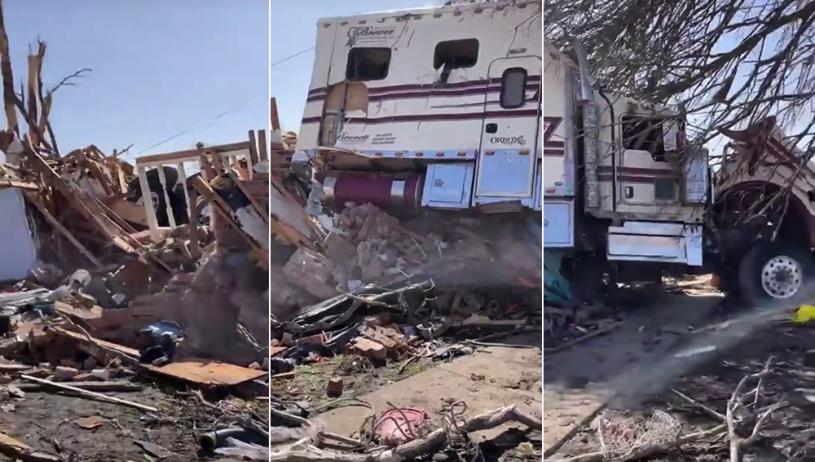 每日郵報等外媒報道,密西西比州城鎮羅靈福克(Rolling Fork)被龍捲風一夜夷平,房屋淪為殘磚碎瓦。當地一對年邁夫妻朗尼與梅莉莎(Lonnie and Melissa Pierce)居住的街道也被龍捲風橫掃,強大威力把鄰居家18輪大貨櫃車捲起,重重砸在他們的房子上,奪去兩人性命。