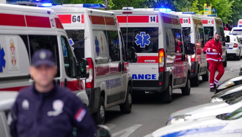 塞爾維亞首都貝爾格萊德一間學校發生槍擊案,多架救護車趕到現場。 美聯社