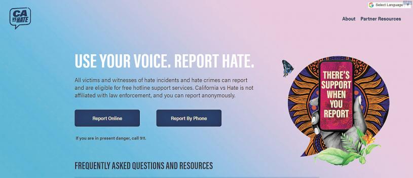 CA vs Hate資源熱線和網絡包括一條非緊急並提供多語言服務的仇視犯罪和事件舉報熱線以及網站,民眾可以在太平洋時間周一至週五上午9點至下午6點,撥打(833)866-4283或833-8-NO-HATE匿名舉報,或在任何時刻上網。對於想要立即向執法部門舉報仇視犯罪或處於迫在眉睫的危險中的個人,請撥打911。有關CA vs Hate的更多資訊,請訪問網站:CAvsHate.org。本報沙加緬度訊