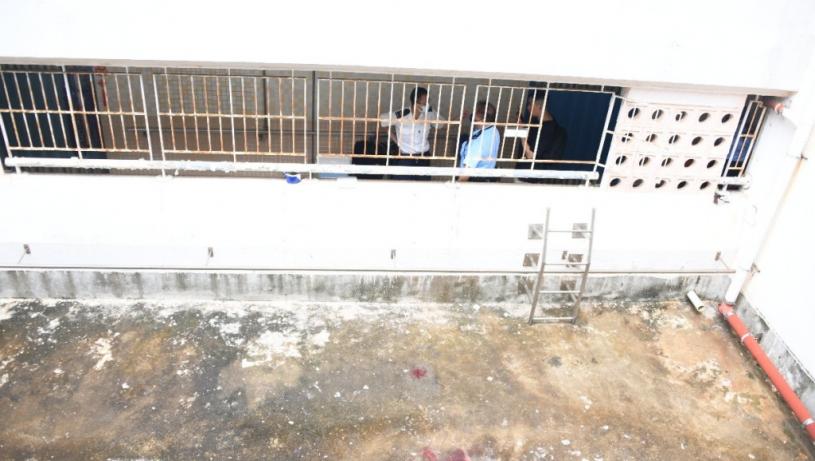 女子由高處墮下平台當場身亡。楊偉亨攝