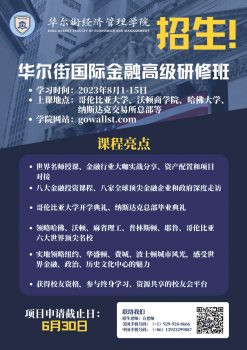日前位於紐約成立不到半年的华尔街经济管理学院(Wall Street Faculty of Economics and Management INC)開始向全球招生,隆重推出「華爾街國際金融高級研修班」項目,旨在著力提升企業及其企業家創新發展能力。該項目學習時間為8月1日至15日,上課地點為克倫比亞大學、沃頓商學院、哈佛大學、納斯達克交易所總部等地,申請截止日為6月30日。報名請聯繫招生老師方老師,電話為(+1)929-928-8666(美國手機)、(+86)13923299887(中國手機)。