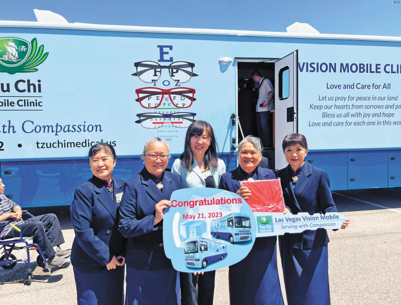 慈濟拉斯維加斯聯絡處5月21日上午舉辦浴佛節及大愛眼科醫療車啟用典禮。慈濟醫療基金會副執行長溫俊強、拉斯維加斯聯絡處負責人高翠玲、內華達州眾議員 Susie Lee代表、內華達州州長辦公室特別助理 Mr. Sonny Vinuya 、拉斯維加斯亞裔商會主席Robert Young及慈濟志工當地社區民眾百餘人參與,金山灣區僑教中心主任莊雅淑特別由南灣專程前往參加。