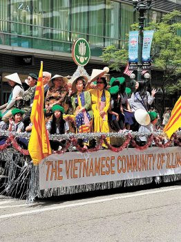 融入主流社會、緬懷為國捐軀軍士的大遊行中,亞裔社區也不落後,南韓社區多年來未缺席過,他們一路上敲動腰鼓、身穿傳統的南韓服飾與帽子,一路上吹吹打打的、叮叮噹噹的勇往前進,錫克族裔、墨西哥社區的遊行方陣也以他們傳統的服飾、音樂為大遊行增添了不一樣的風情,但最特別是越南社區的遊行方陣,他們以多頭醒獅一路上鼓樂喧鬧的掀起歡樂的氣氛,美麗的越南婦女頭戴草笠、穿著顏色鮮艷的越南服飾,她們形成一道亮麗的風景綫,在花車上花姿招展的接受兩旁民眾的歡呼叫好聲。