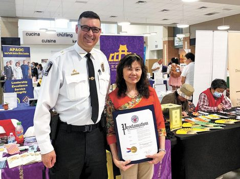 CCACC社區服務中心主任李皎皎與蒙郡警察局局長Maxwell Uy合影。