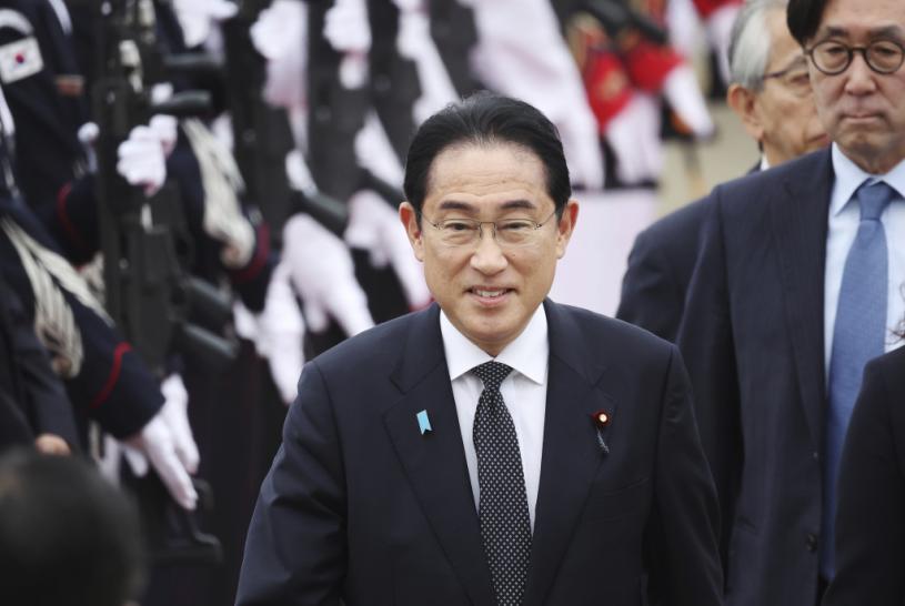 岸田文雄早前抵達南韓首爾。美聯社