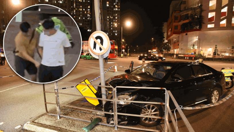 事發於今日(29日)晚上7時許,一輛黑色私家車於粉嶺百和路與一鳴路交界撞向的士後,再剷上安全島撞向交通燈,男司機落車逃走,但最終被警方制服。警方經調查後以涉嫌藏毒、狂亂駕駛、無牌駕駛及駕駛時無第三者保險罪名拘捕涉事司機。