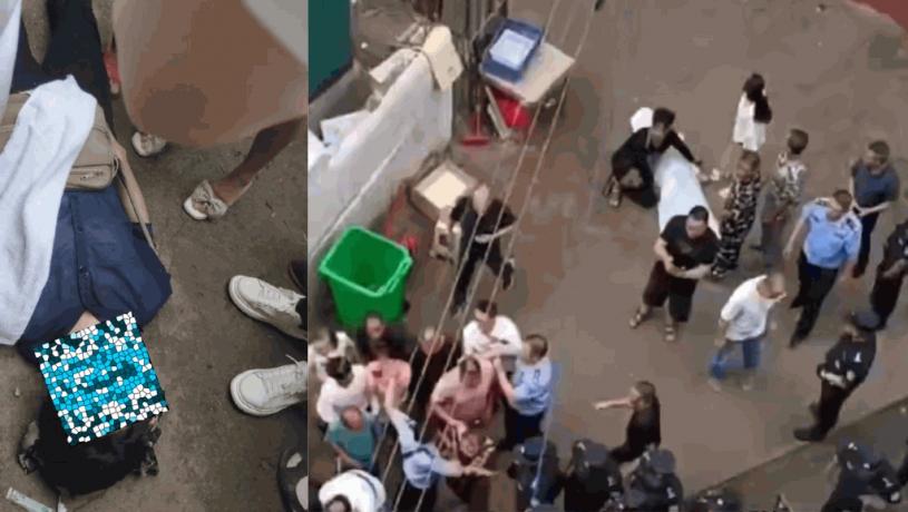 今日(31日)上午,邵陽縣城管到溏渡口鎮老街一個農貿市場執法。網傳影片顯示一名身著深藍色短袖上衣,帶啡色斜揹袋的婦人躺在地上,身上蓋著毛巾和紙箱,大批民眾圍觀。
