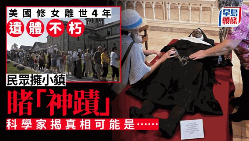 美國密蘇里州一座小鎮近期湧入數萬名天主教徒,爭相目睹一位過世4年的修女,她的遺體安葬後幾乎沒有出現腐壞現象,讓不少人認為是「神蹟」。不過有科學家指出,修女遺體不朽可能是受到存放條件影響,才導致呈現「木乃伊化」,和奇蹟無關。