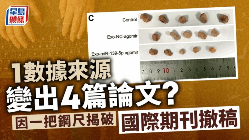 一把帶有刮痕的鋼尺,竟同時出現在4篇不同署名、不同期刊的論文中。這意味着研究數據可能是來自同一個源頭:由「隱形」外部實驗室或第三方機構「出品」。相關學術期刊因此質疑數據有問題,其中3篇論文已被撤回。