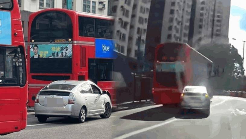 再有車cam片流出!七旬翁揸私家車反轉西九龍後繼續唔收油 直撞巴士車尾