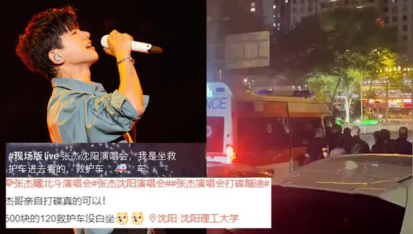 網上流傳「救護車運人進張杰演唱會」的影片,據拍攝者張先生表示,當時以為演唱會的人太多了,出了甚麼意外,落車一睇,黃牛黨竟在那兒逐個收錢,然後把人弄上救護車。瀋陽市急救中心和渾南區衛健局工作人員表示將對此進行核實。