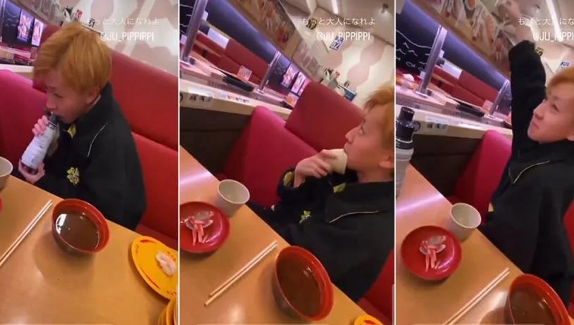 日男往壽司上抹口水舔豉油樽與茶杯 壽司郎:已報警