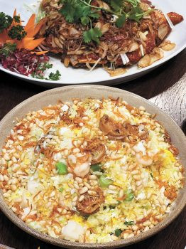 他的撚手菜色包括最多人點的龍蝦伊麵、真材實料有鮑魚和松子的雲頂炒飯、脆皮芝士蛋糕、豉汁龍蝦、四川蝦、京都骨、蒜香雞和燒肉等等。