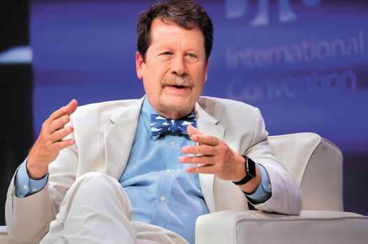 在波士頓會展中心舉行的全球BIO大會上,FDA專員羅伯特·卡利夫與BIO首席執行官雷切爾·金進行了交談。 LANE TURNER/GLOBE STAFF