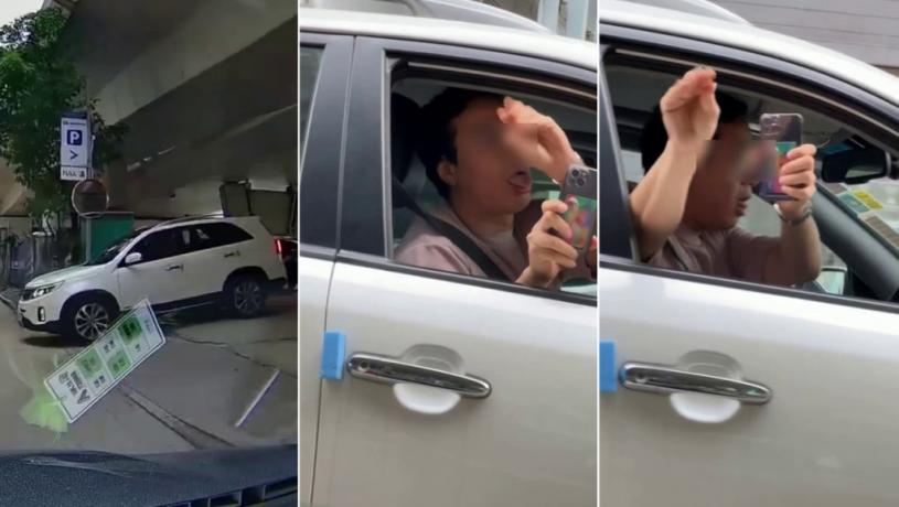 白色私家車司機單手伸出窗外拍攝車Cam車輛。網上片段