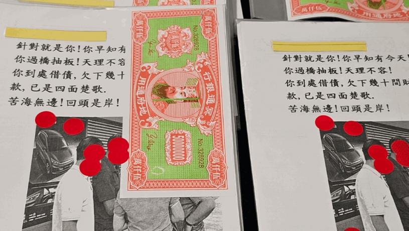 警方在比亞迪尖沙嘴陳列室附近的後巷發現大量追數單張及溪錢。