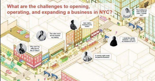 按照目前的土地規劃,有26萬5000名紐約市民住在距家四分之一英里內不允許開設新的街角商店的地區。方案計劃允許在住宅區開設新的街角商店;增加在一樓和上層空間允許開設店面的數量;取消禁止在商業區的餐廳和公共場所跳舞、上演喜劇和音樂的過時規定。