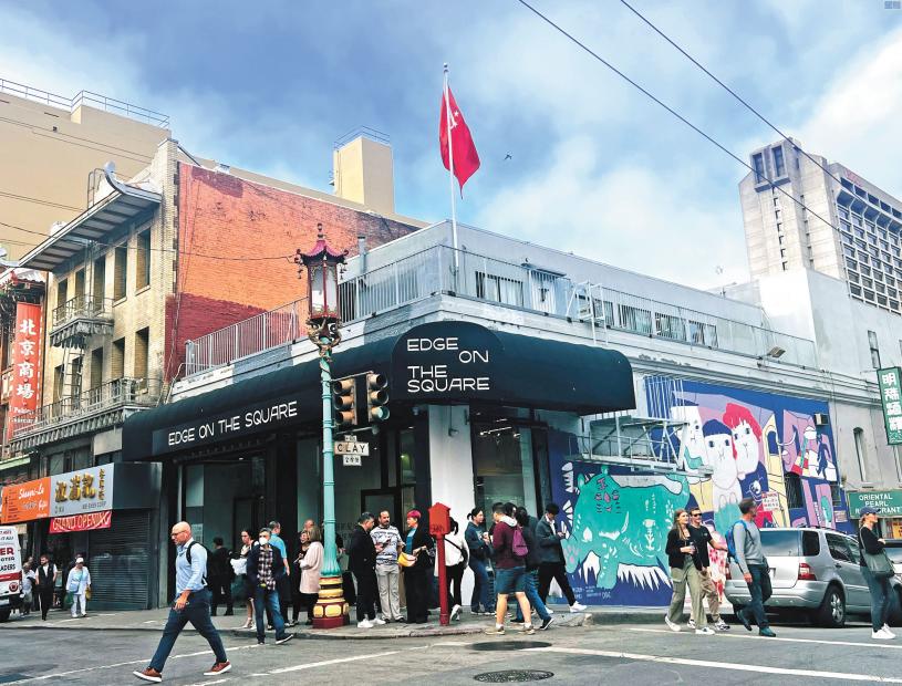 「藝在棱角」(Edge on the Square前名「廣場新天地」)位於都板街和企李街路口,屬於華埠的黃金地段,其新面貌發展備受社區矚目。出席活動的包括代表華埠的市參事會主席佩斯金(Aaron Peskin)、市參事安世輝(Ahsha Safai)、「藝在棱角」創辦人鄧式美、亞洲藝術博物館館長許傑、華協中心行政主任兼CMAC合作社董事楊重賢、知名僑領方李邦琴、三藩市估值官郭華健、中華總商會會長劉運方、社區青年中心行政總監溫靜婷、安老自助處行政總監鍾月娟等。