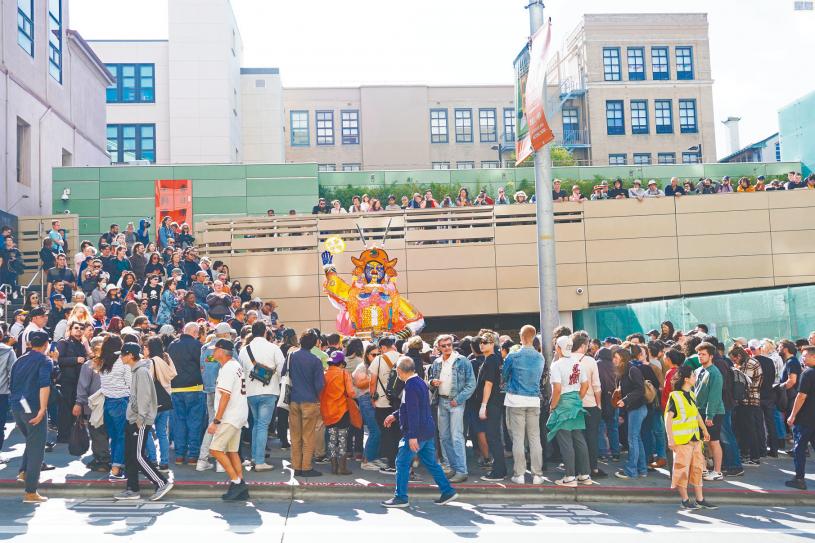適逢中元節(盂蘭節),從未因為一隻來自中國傳說中的餓鬼,而讓三藩市華埠出現現象級的火爆。昨天下午4時,上千名來自不同社區、不同族裔、不同文化背景的遊客、市民,雲集在三藩市中央地鐵華埠-白蘭站旁,圍觀妙蓮仙館從香港請來的14呎高「大士王」(俗稱:鬼王)、爭先恐後與鬼王合影。