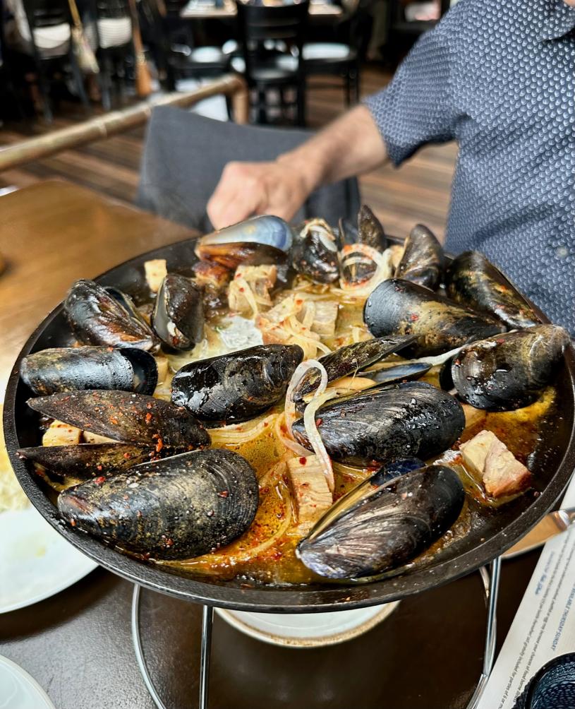 前菜一份鐵鍋青口,熱騰騰的送出來,有聲有色!黑青口新鮮,