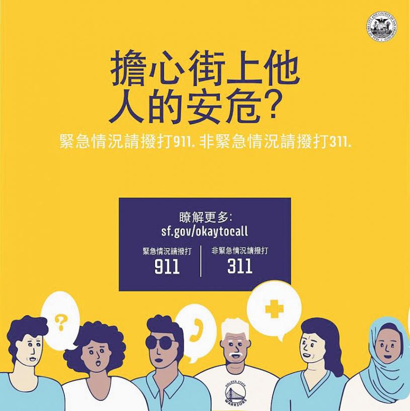 上星期二,市政府推出了一項新的教育宣傳,以更好地支持三藩市的協調街頭應對計劃。從今個星期開始,居民可以在市內的海報、明信片、交通廣告、信息視頻和電子廣告中看到新公共教育信息。您可以瀏覽網頁sf.gov/okaytocall以了解更多有關該計劃的信息。