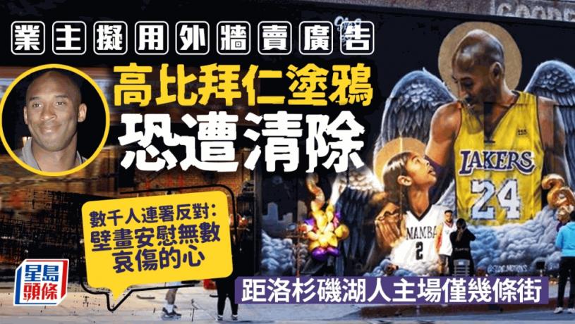 美國籃球明星高比拜仁(Kobe Bryant)3年前直升機失事過世,洛杉磯各地出現紀念他的大型噴漆塗鴉。其中一處最近傳出恐遭屋主清除,引發數千人連署請願。