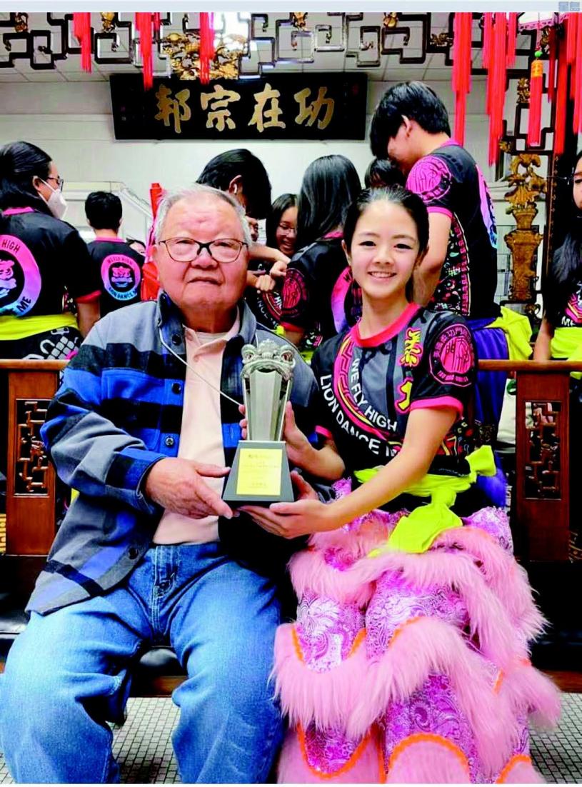 ( 僑社記者馬紅兵報導 )9月9日上午11時,美國柔功門飛龍醒獅團Lion Dance Me在中華總會館,舉行榮獲第十四屆馬來西亞雲頂世界獅王爭霸戰「西方獅王」稱號慶功會。中華總會館總董暨寧陽總會館主席李燦桐、肇慶總會館主席張耀廷、合和總會館主席謝躍池、岡州總會館主席黃國康、陽和總會館主席馬金權、三邑總會館主席楊國興、人和總會館主席蔣澤綿、通事劉榮浩、中文助理李殿邦;慈善家李啟文元老、美西華體會會長方創傑、副會長伍柱鈞、副會長李錫康暨顧雷華欽、黃錫海;柔功門創會會長李彪、監督劉鼎煌;英端工商總會元老黃華璽暨僑界嘉賓出席共慶。中文助理李殿邦、張藍真女士共同主席慶功會秩序。中華總會館總董李燦桐致詞表示:今天我們懷著喜悅的心情在這里慶祝Lion Dance Me醒獅團,在劉世民團長帶領下從馬來西亞凱旋歸來。他們通過比賽榮獲西方獅王冠軍,實至名歸。這是你們長期以來刻苦訓練,也體現你們團結協作精神,更是多位師傅多年辛勤培養和技術的成果,我們僑界、僑社是你們生長的土壤,不泛有心人仕對你們的支持和關註。 今後,希望你們更加刻苦練習,努力提高技藝,也希望僑界一如既往支持關心這班年青人,在未來的發展中大有作為。