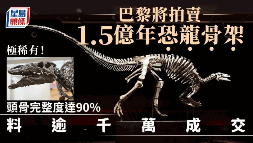 一具侏羅紀晚期、約有1.5億年歷史,保存異常完好的恐龍骨架10月中旬將在法國巴黎拍賣,預計售價將高達120萬歐元(約1,002萬港元)。這具骨架拍賣前將在巴黎向公眾展示。