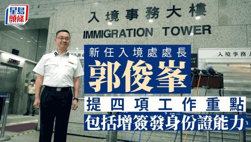 被稱為「偽證專家」的入境處處長郭俊峯今日(19日)正式上任。他下午會見傳媒時表示,對獲委任感到十分榮幸,感謝入境處歷屆處長,衷心感謝中央及行政長官的信任。他又指未來工作任重道遠,重點維護國家安全,並善用科技、提升效率,將帶領入境處團隊面對挑戰。
